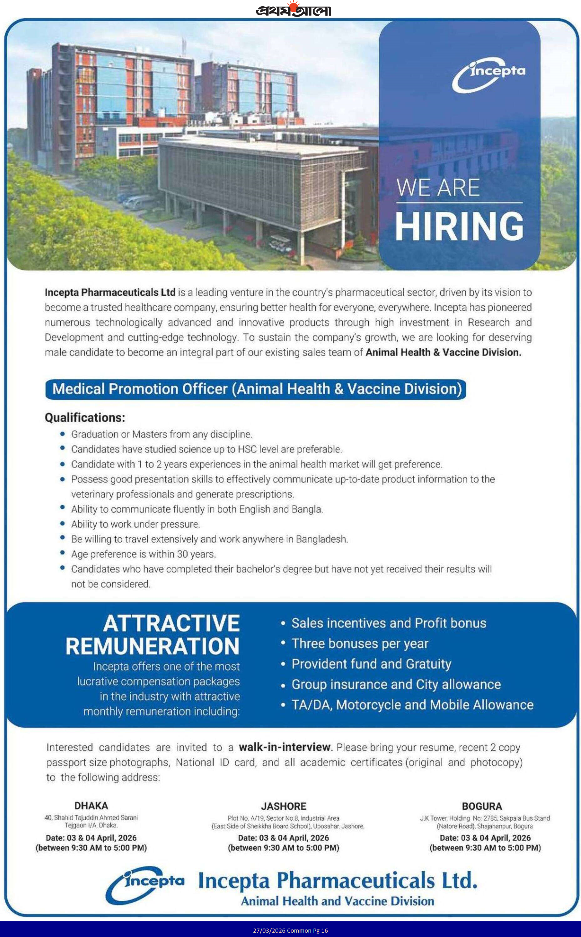 Incepta Pharmaceuticals offers people exciting career opportunities in the port sector. Incepta Pharmaceuticals thinks that young and energetic people are the key to success in this sector that creates brightness in our country. Otherwise, Incepta Pharmaceuticals helps the social economy. If you want to apply for this job, you should submit your application quickly. Incepta Pharmaceuticals Job Circular 2026 original job circular was converted to an image file so that everyone can read it easily or download this job circular. Incepta Pharmaceuticals Job Circular 2026 has been given below.